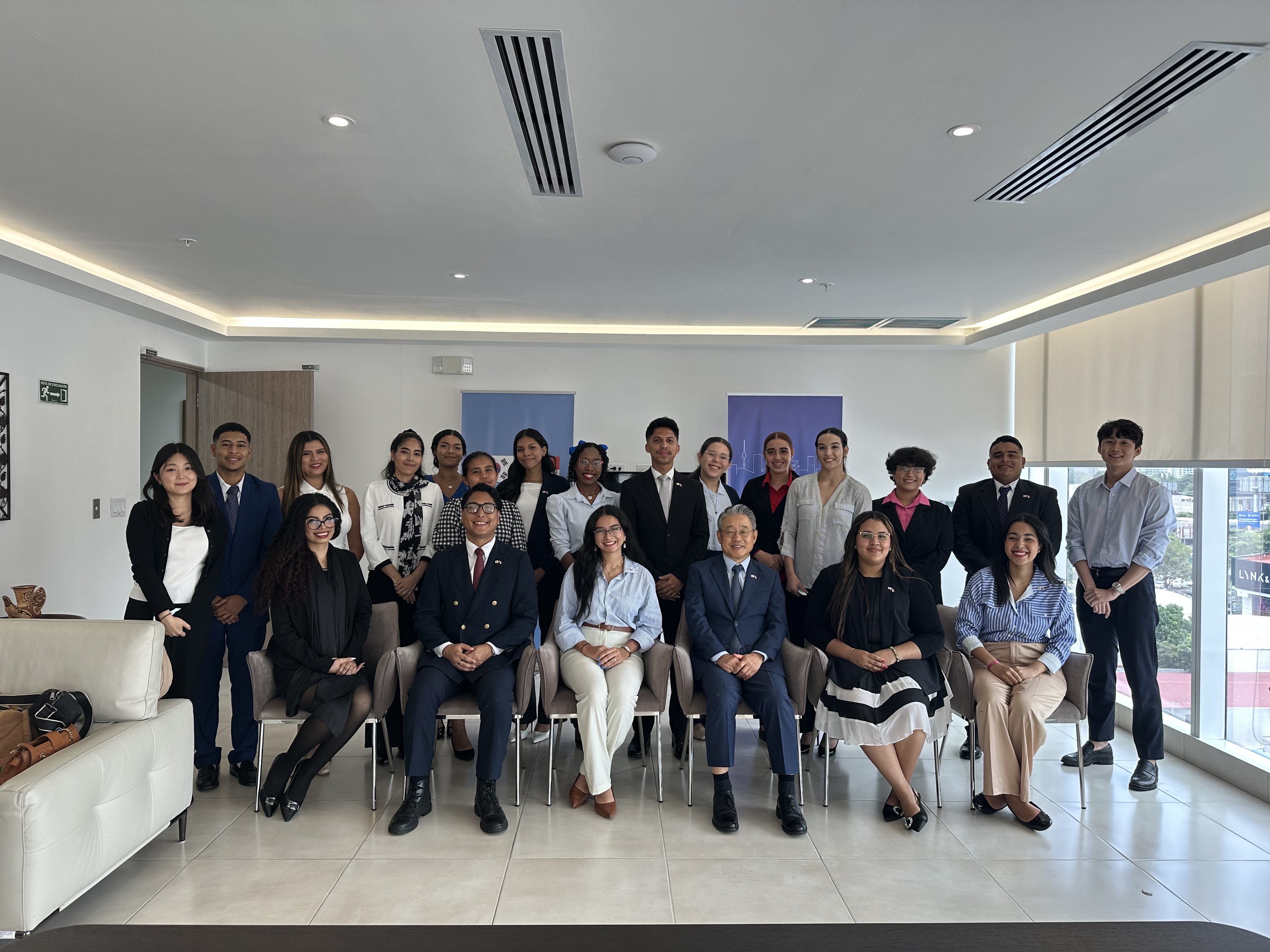 8.12.(화) 파나마대학 국제관계학 전공 대학생연합 소속 대학생 20여명은 대사관을 방문, 한병진 대사의 양국관계에 대한 설명을 청취하고 직원들과 대화하는 시간을 가졌습니다.
