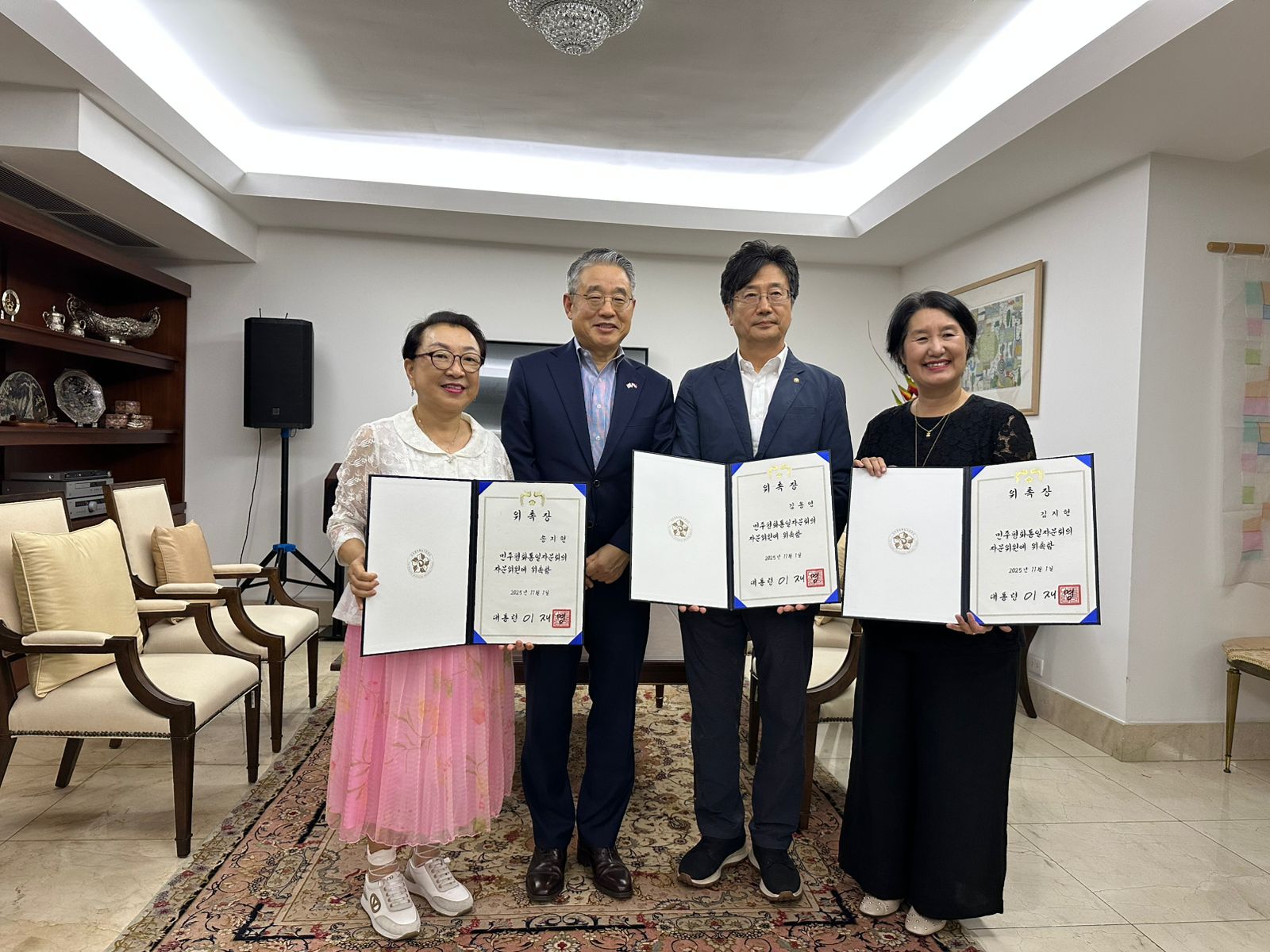 한병진 대사는 12.17.(수) 제22기 민주평통 파나마 자문위원 3명을 초청하여 위촉장 전수식을 개최하였습니다.